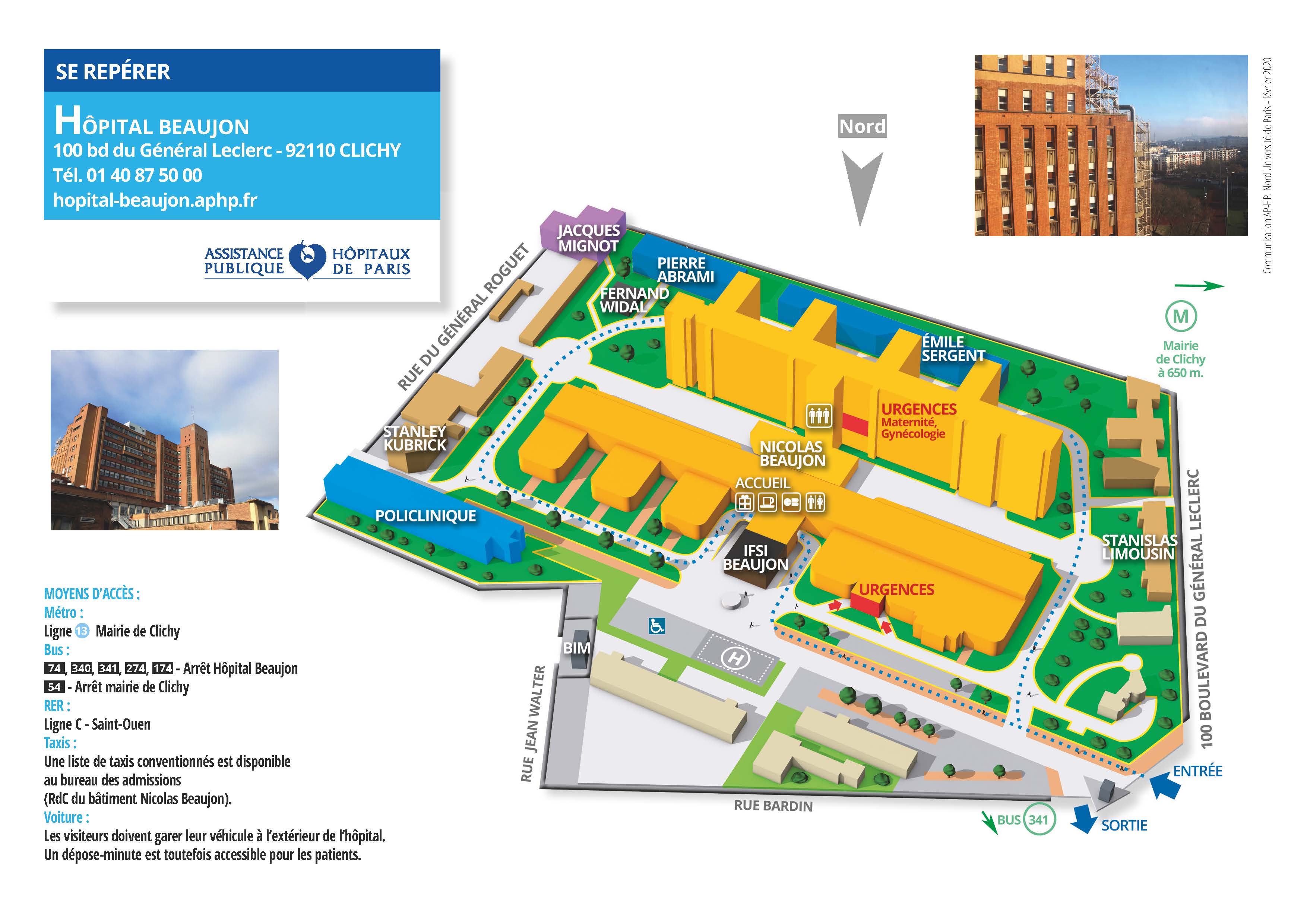 En bus : Hôpital Beaujon (ligne 74, 340 341, 274, 174)
